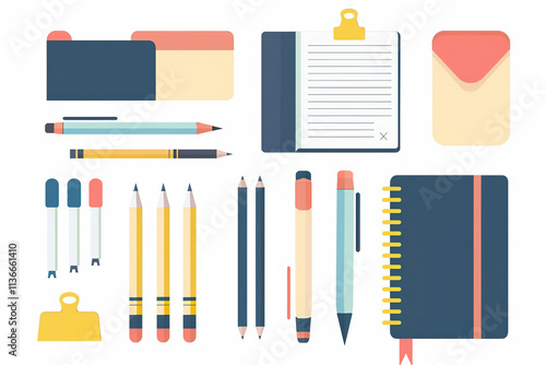 supply, stationery, notebook, organised, education, tool, school, item, writing, paper, study, colourful, neat