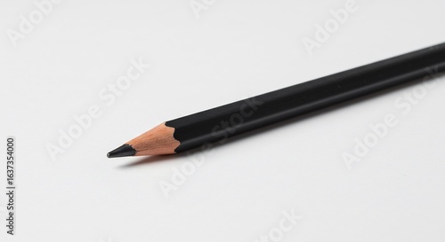 Schwarzer Bleistift liegt scharf angespitz auf weissem Hintergrund sanftes Licht. AI Generated