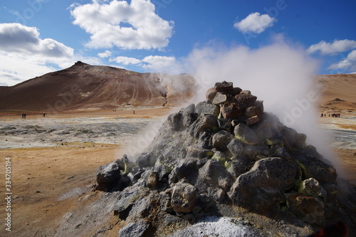countryside, mountain, geyser, volcano, iceland, nature, heaven, vapour, cloud, hot, water, volcanic, eruption, travel, rock, new zealand, fumarole, blue, fog, natural, spring, rotorua, smoke