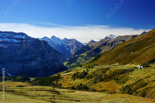 mountain railway, nature, mountain, countryside, autumn, rock, green, yellow, blue, heaven, alpen, swiss alps, switzerland, europa, mount, mountain, peak, panorama, wonderful, wonderfully, hike, adventure, travel, adventure, travelling