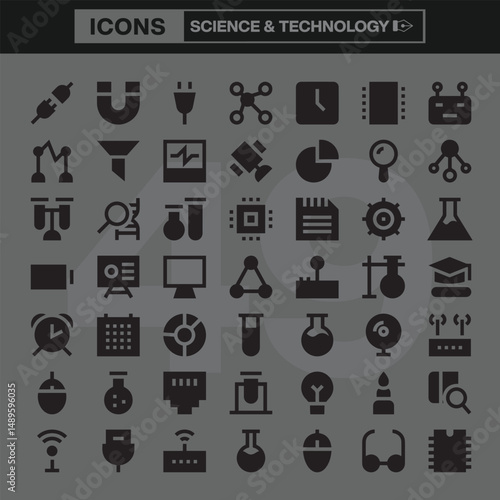 icon, icon, set, vector, signs, symbol, analysis, artificial intelligence, astronomy, atom, biology, chemistry, circuit, coding, computing, electricity, energy, engineering, experiment, futuristic, innovation, laboratory, magnetism, mathematic, microchip, microscope, molecular, physics, programming, renewable energy, research, robotic, satellite, space exploration, statistic