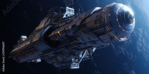 Sci-si spaceship in space generative ai illustration