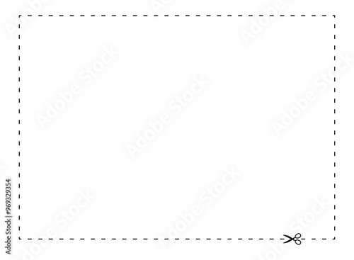 scissors on dashed line rectangle shape, dash line and scissors, dash outline and scissors
