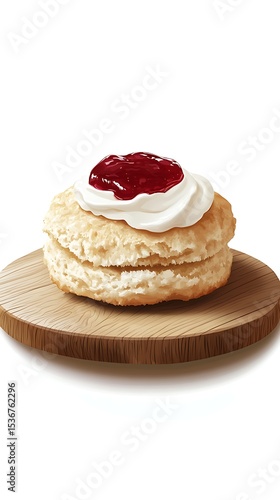 scone, sweet, dessert, food, bakery, treat, whipped cream, jam, berry, food photography, isolated, delicious, tasty, cream, red, white, wooden, plate, sweet food, closeup