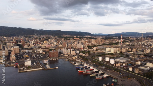 SDGs地球環境!日本の自然!山口県周南市の街並みとコンビナート 瀬戸内海の風景