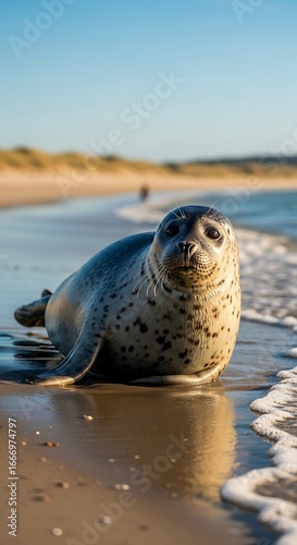 Seal resting on beach, gentle waves