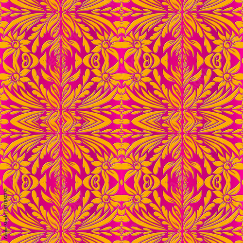 Seamless design vector Beauty flower line art batik ethnic dayak borneo pattern with colourful gradient