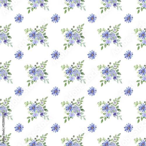 Seamless floral pattern minimalist repeating floral background with watercolor flower and leaf bouquets. Fabric wallpaper print texture. Perfectly for backdrop, wrapped paper.