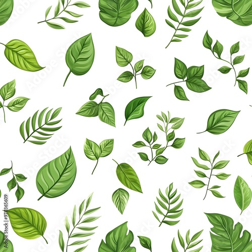 Seamless Natural Leaf Pattern on White Background with Fresh Green Foliage