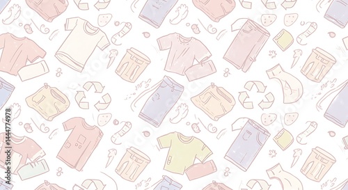 Seamless Pattern of Pastel Clothing and Recycling Symbols