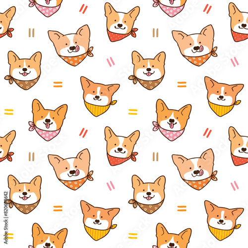 Seamless Pattern with Cute Cartoon Corgi Dog Face Design on White Background