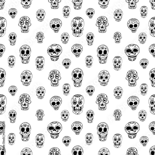 seamless pattern, halloween, skull, illustration, dead, death, skeleton, vector, flower, pattern, art, symbol, design, skittish, gothic, horror, floral, background, sugar, evil, bone, colours, vintage, holiday, head, mexican, human, leaf, shape, wallpaper, tradition, black, decoration, tattoo, celebration, elegance, anatomy, rose, retro, group, nature, painting, paper, idea, shock, detail, white, wrapping