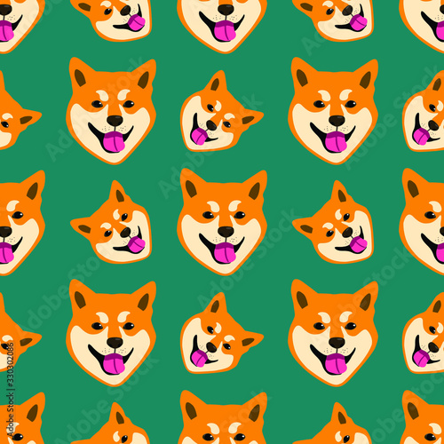 animal, cat, cartoon, dog, cute, pet, illustration, icon, animal, set, baby, vector, fun, isolated, collection, background, doggy, green, orange, pattern, puppy, seamless pattern, shiba inu
