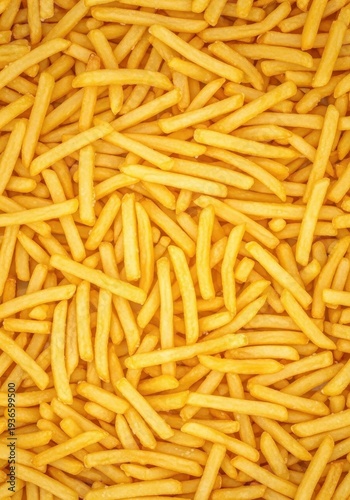 Seamless textured background featuring a large quantity of crispy, salty, golden yellow french fries arranged uniformly across a surface for food themes, repeat, fried, french fries