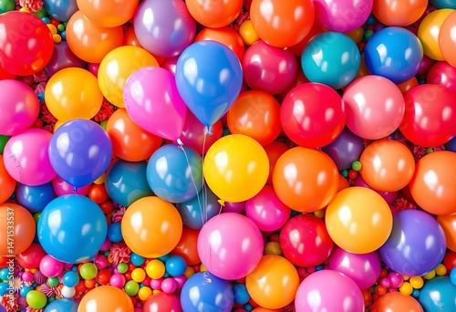 Seamless tile of vibrant birthday balloons and colorful assortments, texture, bright