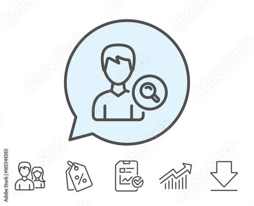 Search User line icon. Profile Avatar with Magnifying glass sign. Male Person silhouette symbol. Report, Sale Coupons and Chart line signs. Download, Group icons. Editable stroke. Vector