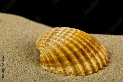 Seashell on the sand isolated on a black background