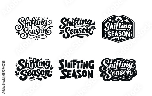 Seasonal Lettering Variations. Shifting Season Quote Lettering. Set lettering. harmonious lettering variations of the same emblematic concept, each with