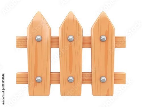 Section of a light brown wooden picket fence with metal bolts, isolated on a transparent background for boundaries and security themes