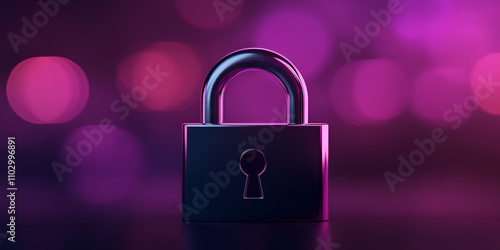 Secure Padlock Against Vibrant Pink and Purple Bokeh