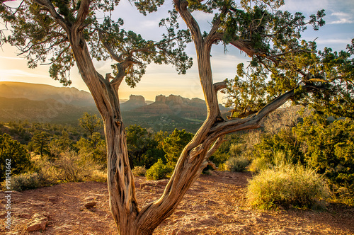 arizona, desert, landscape, sedona, sunset, dusk, red rock, nature, outdoors, hiking, hike, trail, travel, tour tourism, golden hour, tree, perspective