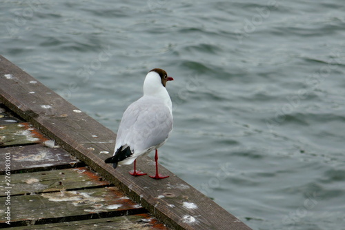 Segull sitting at the edge of the seaside