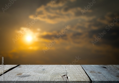 Selected focus empty gray wooden table and sunshine in the evening texture or summer background image. for your photomontage or product display