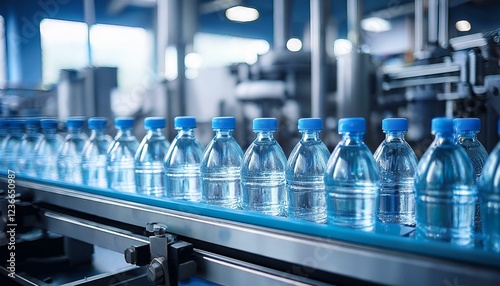 Selective focus of Water bottling line for processing pure water into small bottles.