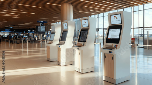 Self-service check-in kiosks at airport with user-friendly interface