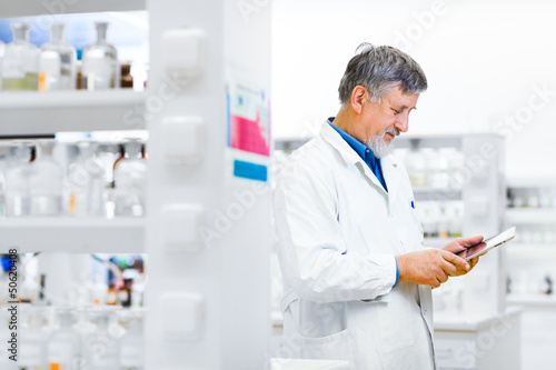 Senior doctor/scientist using his tablet computer at work