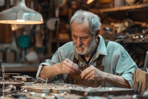 jeweller, jewellery, workshop, craftsmanship, hand-made, tool, senior, artisan, material, silver, gold, design, creative, aesthetic, gem, ring, necklace, bracelet, precision, tradition, skill, focused, workspace, experienced, metalwork, making, hobby, artistry, technique, unique, design, quality, diligence, inspiration, creation, pattern, polishing, wire, soldering, gemstone, antique, vintage, skill, concentration, atmosphere, creativity, small, business