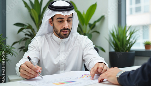 Senior Middle-Eastern man reviewing career documents in office, career growth