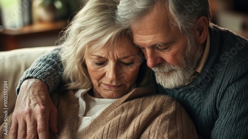 Senior woman offering comfort to her ailing husband, demonstrating love and support in challenging times
