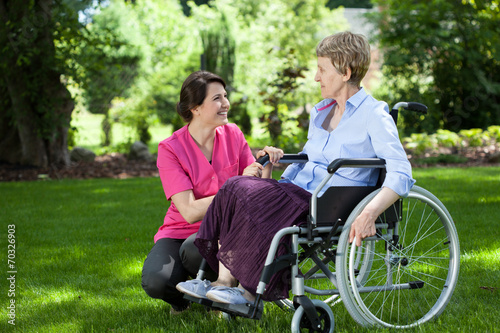 happy, senior, woman, wheelchair, caring, caregiver, nature, park, garden, talk, discussion, smile, disability, handicap, home, health, care, nurse, doctor, uniform, equipment, mobility, outside, laugh, leisure, rest, relax, volunteer, assistance, support, help, disease, disease, patient, retirement, clinic, hospital, nursing home, pensioner, impairment, handicapped, disabled