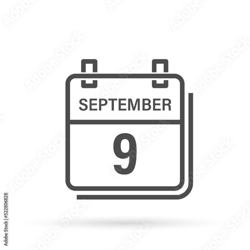 September 9, Calendar icon with shadow. Day, month. Flat vector illustration.