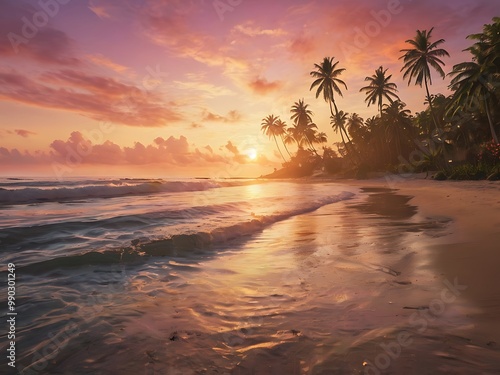 sunset, palm tree, hammock, tropical paradise, beach vacation, natural beauty