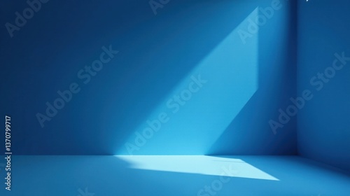 Serene Blue Room Corner Illuminated by Sunlight, Ideal for Minimalist Product Displays or Abstract Backgrounds
