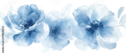 Serene Blue Watercolor Flowers: Botanical Art, Elegant Floral Design, Soft Hues, Tranquil Bloom, Artistic Painting, Nature's Beauty