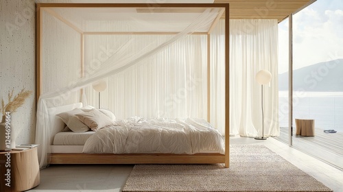 Serene Coastal Bedroom with Canopy Bed and Ocean View