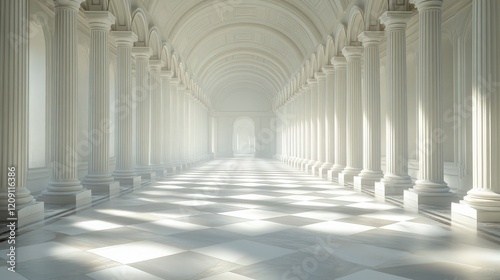 architecture, hallway, interior, column, light, shadow, marble, roomy, elegant, design, space, symmetry, classic, serene, bright, white, tranquil, perspective, flooring, detail, illumination, classical, background, clean, beauty, environment, pattern, entrance, empty, open, luxury, calm, minimalism, area, artistic, historical, grandeur, wide, soft, airy, landscape, vision, architectural, classicism, contrast