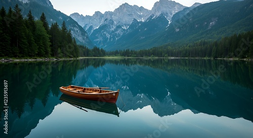 Serene Mountain Lake Rowboat Peaceful Landscape Photography