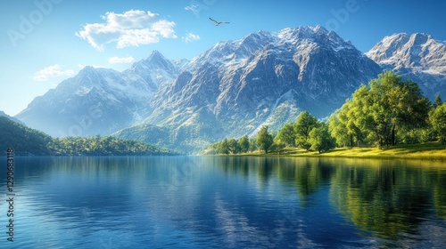 Serene Mountain Lake Sunrise Landscape