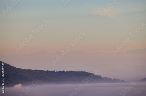 serene, landscape, dawn, pastel, sky, mist, tranquil, nature, scenery, peaceful, morning, sunrise, fog, atmospheric, hill, vale, outdoors, scenic, view, horizon, calm, idylli, environment, wilderness, beauty, cloud, natural, majestic