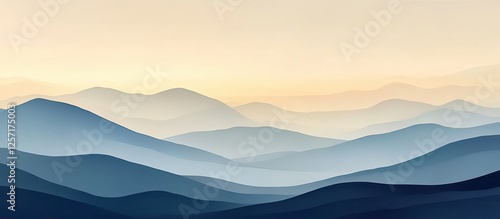 Serene Mountain Landscape at Dawn with Soft Pastel Colors and Layered Hills Creating a Tranquil and Peaceful Atmosphere