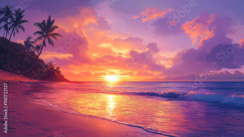 sunset, beach, ocean, sky, landscape, nature, summer, horizon, wave, water, sea, evening, dusk, coast, paradise, orange, travel, cloud, tropical, sun, sunrise, vacation, tree, relaxation, island, beautiful, sand, palm, peaceful, idylli, tranquil, calm, holiday, pink, sunlight, silhouette, serene, palm tree, shore, exotic, scenery, tropical beach, romantic, seascape, dawn