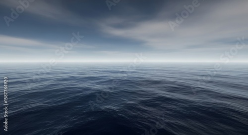Serene Ocean Horizon - Tranquil ocean scene, vastness, calmness, blue waters, horizon. Symbolizing peace, infinity, mystery, serenity, exploration.