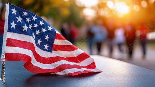 american, flag, patriotism, close, wave, wind, symbolize, national, pride, sunset, ballot, mobile, progress, textile, moment, engagement, fabric, awareness, civic, context, support, service, colours, greenery, event, citizen, ambience, value, respect, background, landscape, serene, involvement, freedom, election, atmosphere, access, volunteer