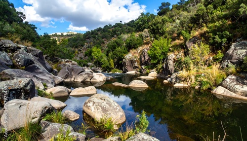 river, rocky, landscape, water, nature, scenic, green, forest, mountain, stone, calm, tranquil, flowing, sunlight, cloud, sky, outdoors, beauty, serenity, gorge, rock, lush, vegetation, plant, clear, waterfall, quiet, fresh, vitality, grey, brown, brownish, greenish, grey, riverbed, serene, image, photo, view