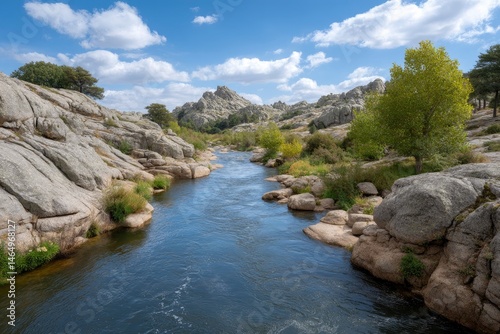 Serene River Flowing Through Granite Rocks: A Picturesque Landscape