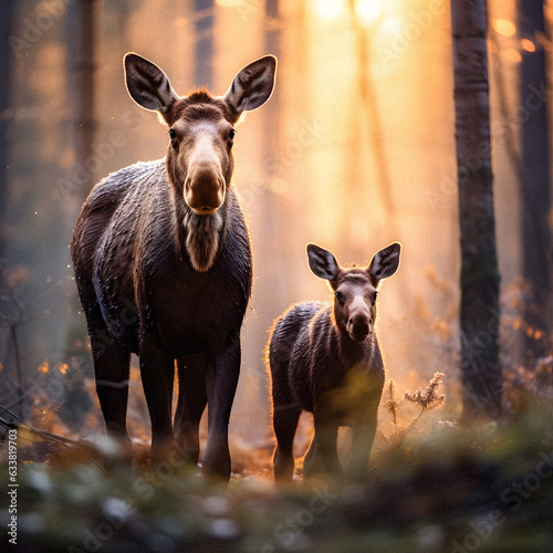 Serene Spring: Generative AI Image of Moose Family Amidst Canadian Wilderness